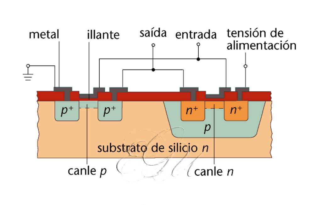 O Semicondutor Complementario Metal-óxido é un tipo de circuíto integrado que destaca polo seu consumo de enerxía extremadamente baixo e pola súa vulnerabilidade para ser danado pola electricidade estática. Está constituído por un transistor MOSFET de canle n montado en serie cun de canle p. A súa velocidade e densidade de integración son intermedias entre as conseguidas polas tecnoloxías NMOS e PMOS ( MOS). Os dispositivos CMOS utilízanse nos reloxos dixitais, nas calculadoras de peto, nos microprocesadores e nas memorias dos ordenadores.