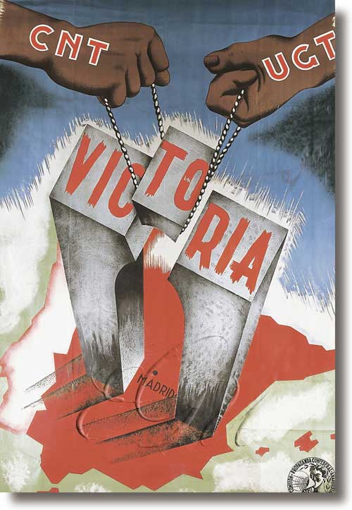 Despois do triunfo da Frente Popular nas eleccións de febreiro de 1936 o país caeu nunha nova efervescencia revolucionaria. Ao ver os seus intereses e valores seriamente ameazados, as clases burguesas e a dereita sociolóxica comezaron a manifestar a súa inquietude. O 17 de xullo de 1918 as guarnicións militares do norte de África alzáronse contra o goberno legalmente constituído. A polarización social en dous grandes bloques que propiciara a estratexia frontepopulista favoreceu o pronunciamento, que conseguiu controlar moitas capitais. Non obstante , a resposta obreira permitiu que nas principais cidades do país (Madrid, Barcelona, Bilbao ou València, entre outras) o golpe non triunfase, feito que significou o principio dunha guerra civil. A excepcionalidade dos acontecementos provocou que a CNT, en contra das súas ideas apolíticas e antiestatalistas, participase no goberno republicano e no da Generalitat de Catalunya. Deste xeito, por primeira vez na historia de España accedeu unha muller a ocupar unha carteira ministerial: foi Federica Montseny Mañé, ministra de Sanidade entre 1936 e 1937. Os milicianos cenetistas destacaron por levar o peso da resistencia nas frontes de Catalunya e Aragón. Non obstante , nas áreas que controlaron, en vez de respectar a legalidade republicana puxeron en marcha a revolución social e realizaron colectivizacións agrarias. Esta actitude provocou enfrontamentos co goberno da República e cos comunistas. A dialéctica estableceuse entre os partidarios de priorizar a vitoria do réxime republicano e os dispostos a aproveitar a conxuntura para desenvolver a súa revolución social (os anarquistas). Para poder gañar a guerra era preciso acadar o máximo grao de coordinación entre as forzas antifranquistas, pero o receo mutuo que se profesaban anarquistas e comunistas fixo imposible o entendemento entre eles e, finalmente, contribuíu á súa derrota.