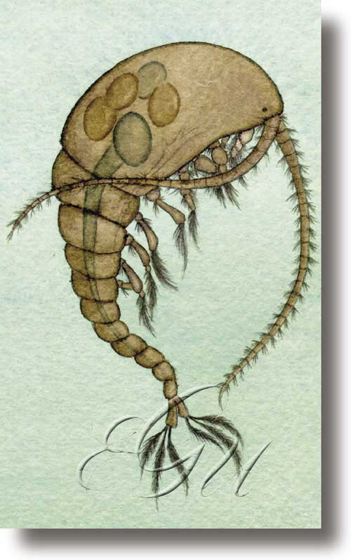 Subclase de crustáceos da clase dos maxilópodos. De pequeno tamaño, non superan as máis das veces os 3 mm. Posúen un corpo alongado e afiado no extremo inferior, sen caparazón, con cinco metámeros na cabeza, un tórax con sete metámeros -dos que o primeiro e, ás veces, o segundo se fusionan coa cabeza para formar o cefalotórax-, catro metámeros abdominais e mais un telson. Presentan anténulas unirrámeas e un par de antenas moi longas. Teñen catro pares de patas aplanadas que lles serven para remar e un quinto par de patas reducido, axudados polos oito apéndices aplanados do abdome que serven tamén como remos. Respira mediante unha transferencia directa entre o corpo do animal e o medio acuático. As femias levan sacos cos ovos no abdome. A larva é do tipo nauplio, e o adulto presenta un ollo sinxelo disposto en posición central e anterior da cabeza. Existen especies de vida libre, que poden chegar a constituír o organismo máis abundante do zooplancto e por tanto da vida nos ecosistemas acuáticos, de vida parasita, de corpo moi modificado e outras de vida simbionte. Os principais xéneros son Calanus, Cyclops, Diaptomus, Ergasilus, Lernaea e Salmincola.