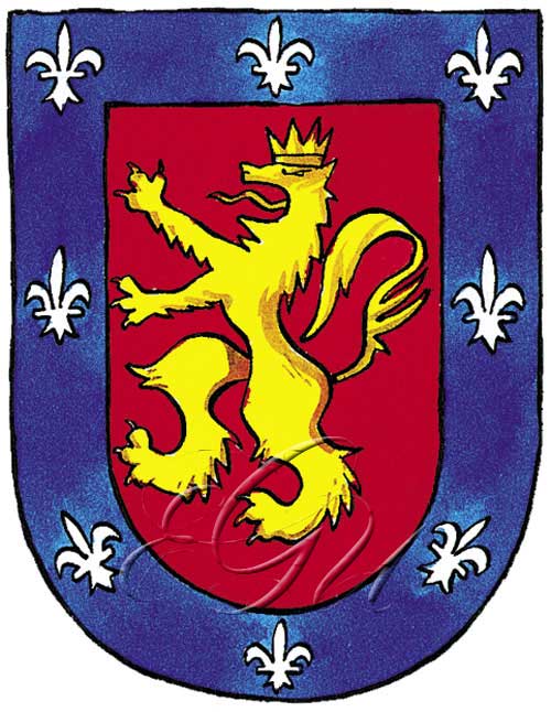Liñaxe que leva como armas, en campo de goles, un león de ouro, coroado do mesmo metal; bordo de ouro, con oito flores de lis de azul. Algunha variante trae, en campo de goles, un león rampante de ouro, faixado con tres faixas de goles; bordo de azul, con oito flores de lis de prata.