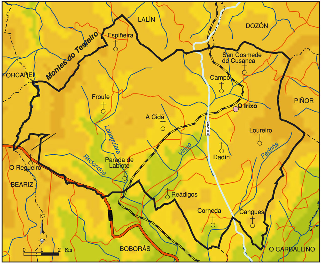Concello da comarca do Carballiño, situado na provincia de Ourense no centro da Comunidade Autónoma de Galicia. Limita ao N co concello de Dozón e Lalín (ambos os dous na comarca de Deza), ao NO co de Forcarei (na comarca de Tabeirós-Terra de Montes), ao O con Beariz, ao S con Boborás e O Carballiño, e ao L co Carballiño e Piñor (todos eles na comarca do Carballiño). Abrangue unha superficie de 121 km 2, en que acolle unha poboación de 1.903 h (2007), distribuída nas parroquias de Campo, Cangues, A Cidá, Corneda, Dadín, Espiñeira, Froufe, Loureiro, Parada de Labiote, Reádigos, O Regueiro (que ten a súa cabeceira no concello de Boborás) e San Cosmede de Cusanca. A capital municipal é a vila do Irixo, na parroquia de Campo, situada a 42° 31’ de latitude N e 8° 6’ de lonxitude O, 73 km ao SL de Santiago de Compostela e 45 km ao NO de Ourense. Está adscritoao partido xudicial do Carballiño e á diocese de Ourense.