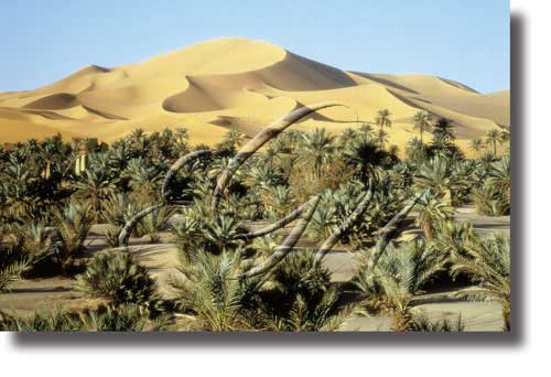 Illote de cultivos e de poboación sedentaria, situado nun deserto, que está determinado pola existencia de auga que pode provir, segundo as circunstancias físicas, de capas freáticas, dun pozo, dunha fonte, dun uadi ou dun río.