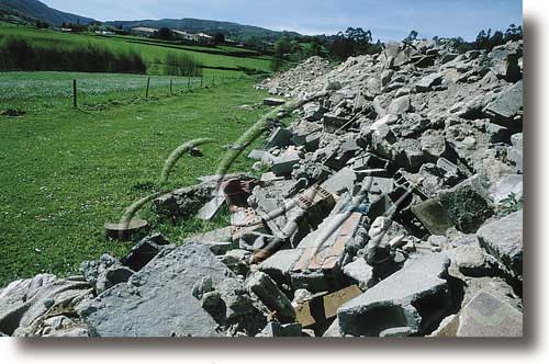 Fragmentos ou residuos que quedan despois de derrubar un edificio ou calquera outra construción.