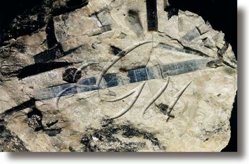 Silicato de aluminio de fórmula Al2SiO5. Cristaliza no sistema triclínico con cristais de hábito tubular. Ten dureza variable de 4 a 7 segundo as caras, densidade de 3,6 e cor azul. Tamén se coñece co nome de distena.