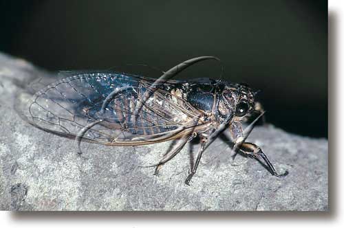 Insecto da familia dos cicádidos da orde homóptera. Cando é adulto caracterízase por posuír un corpo groso e escuro que, dependendo da especie, acada un tamaño de entre 10 e 180 mm, unha cabeza grande, provista dun longo peteiro que mantén nunha posición baixada cando non se alimenta, dous pares de ollos compostos e, entre eles, tres ollos sinxelos ou ocelos dispostos en triángulo; dous pares de alas membranosas e aptas para o voo que manteñen pregadas ao longo do corpo cando non fai uso delas, o primeiro é transparente e o dobre de longo que o segundo. Os machos producen unhas estridulacións, especialmente os días calorosos, mediante a vibración que ten lugar nunhas membranas con sucos que presentan nos costados do abdome e que se ve amplificada mediante unhas cavidades de resonancia tamén abdominais. Estes sons teñen, fundamentalmente, unha función de reclamo sexual. Para o home pode variar entre os 120 decibelios, o que supón acadar o limiar da dor e escoitarse nun raio de máis de 1 km, ou resultar inaudible no caso de especies de pequeno talle por non acadar o limiar mínimo de audición humano. Tanto os machos coma as femias presentan órganos auditivos, aínda que os machos os bloquean cando son eles os que emiten o sinal. É común o agrupamento de machos para cantar de xeito sincrónico e evitar o ataque das aves, para as que pode resultar doloroso achegarse a estas concentracións dado o volume que acadan. As femias portan un ovopositor en forma de serra co que practican unhas incisións en forma de Y nos talos dos vexetais onde depositan ata 20 ovos dos 600 que chegan a poñer. Pasados uns días, nacen as larvas que se deixan caer ao chan onde se enterran ata acadar as raíces das plantas, de onde obteñen o alimento ao chuchalas. O desenvolvemento larvario é moi lento e pode durar, dependendo da especie, dende 2 ata 18 anos no caso dalgunhas cigarras americanas. As larvas presentan unhas patas anteriores de gran tamaño e adaptadas á escavación. Tras sufrir unha serie de mudas que lles permiten o crecemento, rematan o seu desenvolvemento emerxendo da terra, subindo ás árbores e mudando por última vez, proceso que dá lugar ao insecto alado ou adulto. Os adultos aliméntanse sucionando o zume de vexetais. As cigarras americanas do xénero Magicicada caracterízanse por presentar un ciclo de vida de trece ou dezasete anos. Neste tempo, os adultos aparecen en moi baixas densidades para logo, acadado este prazo, emerxer de xeito sincronizado nun número desorbitado. Existen unhas 1.500 especies de distribución principalmente tropical. Na Península Ibérica están asociadas sobre todo á área mediterránea. Os xéneros de cigarras máis comúns en Europa son Cicadetta, Issus e Centrotus.