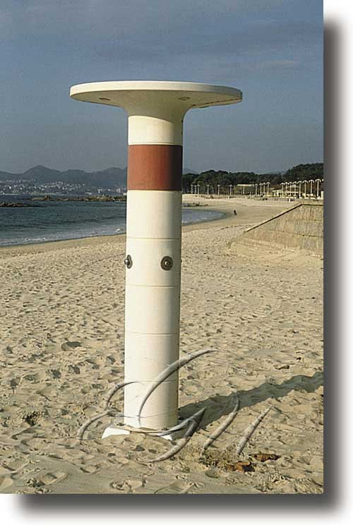 Auga que se fai caer sobre o corpo en forma de chuvia ou chorro para lavalo, refrescalo ou con propósito medicinal.