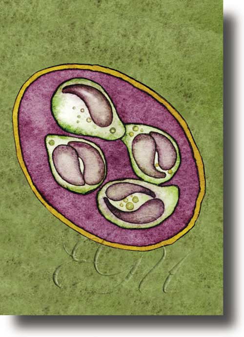 Xénero de protozoos que afecta a gran número de vertebrados. Cando un animal inxire oocistos esporulados destes parasitos, os esporozoítos abandonan o oocisto e invaden as células e a mucosa intestinal. Unha vez dentro da célula, os esporozoítos desenvólvense intracelularmente formando esquizontes multinucleados que desenvolven máis esporozoítos que, á súa vez, penetran en novas células, e algúns destes desenvólvense para formar macrogametocitos e microgametocitos que se xuntan para producir novos oocistos, que se liberarán nos excrementos. Estes, nas condicións axeitadas de humidade e temperatura, dan lugar a oito esporozoítos. As infeccións de Eimeria causan a coccidiose, que supoñen a invasión e destrución da mucosa intestinal polo que poden presentar síntomas clínicos serios, como diarrea líquida, deshidratación e morte.