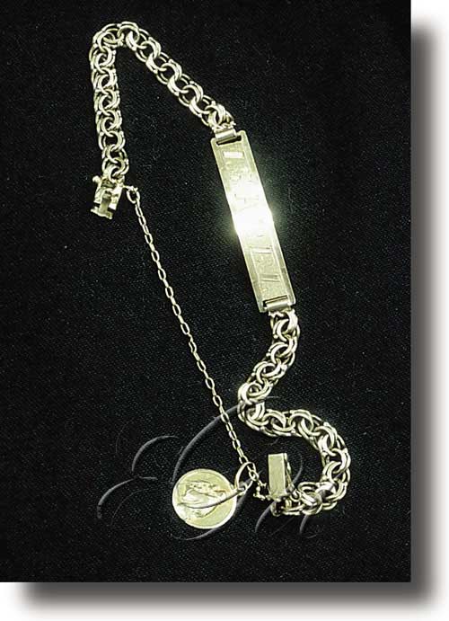 Pulseira en forma de cadea cunha lámina en que, normalmente, vai gravado o nome de quen a leva.