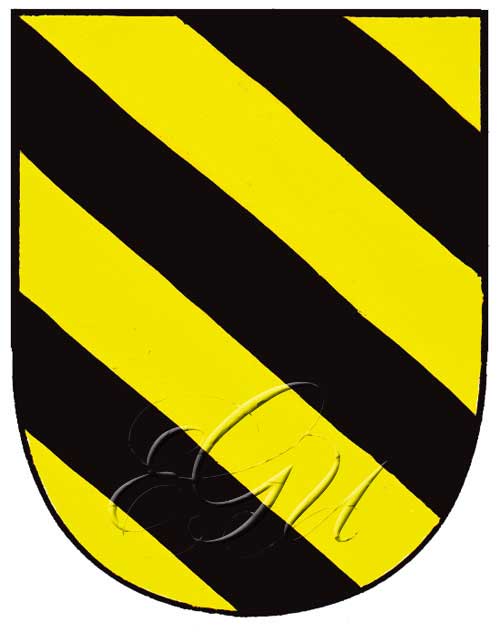 Liñaxe que trae por armas, en campo de prata, cinco dados (correspondentes ás quinas de Portugal), postos en aspa; bordo formado por un cordón, como o de san Francisco.
