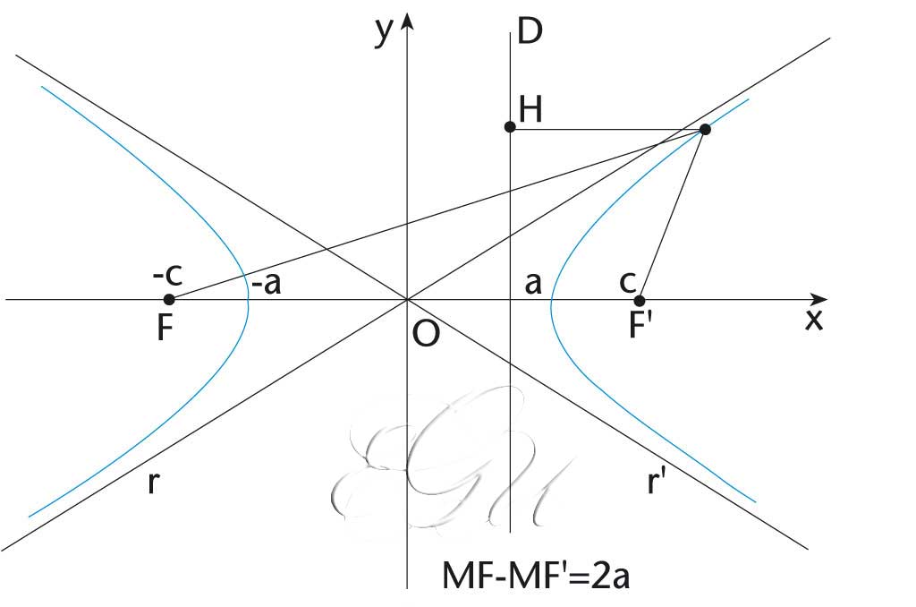 Curva aberta, intersección dun cono de revolución cun plano que forma co eixe daquel un ángulo máis pequeno que coa xeratriz. Constitúe o lugar xeométrico dos puntos do plano tales que a diferenza das súas distancias a dous puntos fixos, denominados focos, é unha constante.