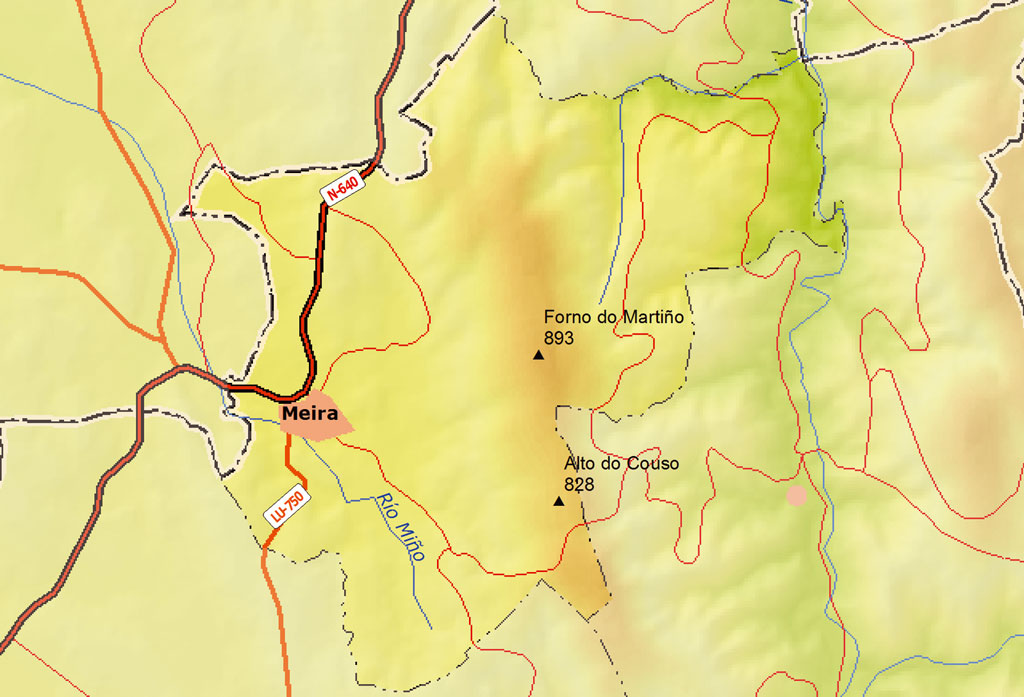 Concello da comarca de Meira, situado no L de Galicia a 43° 12’ 30”de latitude N e 7° 17’ 30” de lonxitude O. Limita ao N cos concellos da Pastoriza (Terra Chá) e Riotorto (Meira), ao L con Ribeira de Piquín (Meira), aoó S con Ribeira de Piquín e Pol (Meira), e ao O con Pol (Meira) e A Pastoriza (Terra Chá). Abrangue unha superficie de 50,6 km 2 cunha poboación de 1.794 h (2007), distribuída nas parroquias de Meira e Seixosmil. A capital esta na vila de Meira, na parroquia do mesmo nome, situada a 141 km de Santiago de Compostela e 34 km de Lugo. Está adscrito á provincia de Lugo, á diocese de Lugo e ao partido xudicial de Lugo.