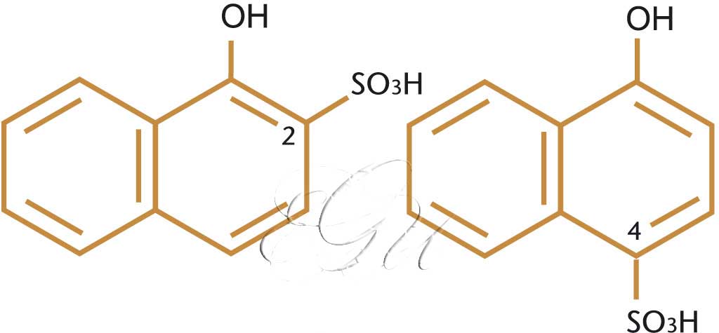 Derivado sulfonado do α-naftol e do β-naftol, como o ácido 1-naftol-2-sulfónico, o ácido 1-naftol-4-sulfónico e o ácido 2-naftol-6-sulfónico.