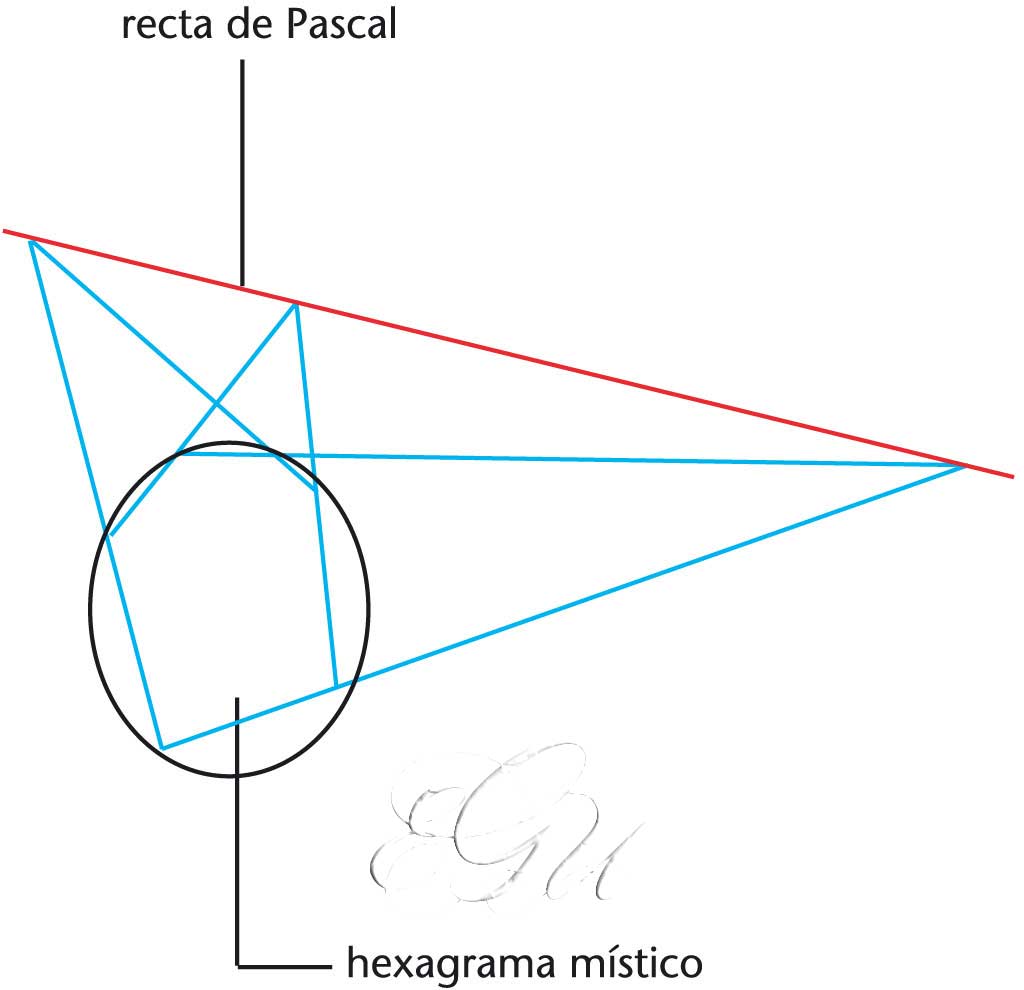 Teorema segundo o que os tres puntos de intersección dos lados opostos dun hexágono inscrito nunha cónica determinan unha recta, a recta de Pascal. O hexagrama que se forma denomínase hexagrama místico.