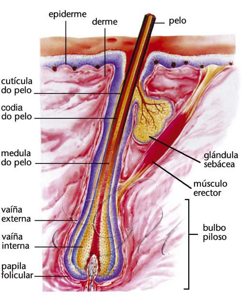 Apéndice filiforme de materia córnea e orixe epidérmica que cobre a pel dos mamíferos, protexéndoa e evitando a perda de calor. Consta de raíz, intimamente adherida ao folículo piloso, e de talo ou corpo, de tamaño e cor variable dependendo da cantidade de pigmento que conteña. Ademais, a carón da raíz existen unhas glándulas sebáceas que lubrifican o pelo.