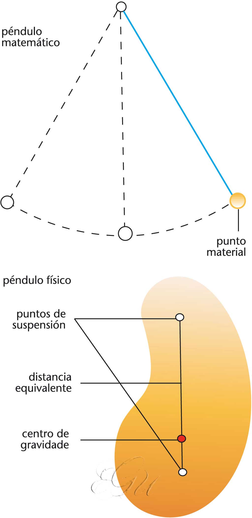 Sistema físico formado por un corpo material que oscila arredor dun eixe horizontal que non pasa polo seu centro de gravidade. Co fin de establecer as leis do péndulo, idealizouse o chamado péndulo simple ou matemático, que consiste nun punto material que pende dun fío inextensible e sen peso, fixado nun punto inmóbil. Para oscilacións de pequena amplitude, o movemento do péndulo segue un movemento harmónico simple. No péndulo físico ou real a masa non se concentra nun punto, senón repartida nun certo volume. Presenta dous puntos de suspensión diferentes que lle dan o mesmo período de oscilación, e a distancia entre estes puntos é a lonxitude equivalente do péndulo físico. O péndulo reversible de Kater compórtase coma un péndulo simple de lonxitude igual á distancia entre os dous puntos de suspensión. Coa axuda do péndulo, demóstrase a rotación da terra (experimento de Foucault). O péndulo utilízase como órgano regulador dos reloxos fixos, xa que unha oscilación completa dura sempre o mesmo tempo.