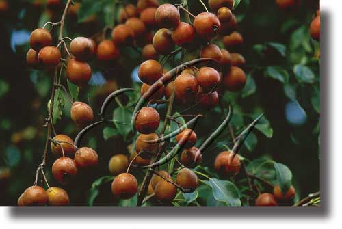Árbore caducifolia, de ata 8 m de altura, espiñenta, que presenta as follas alternas, arredondadas e pecioladas, flores hermafroditas de cor branca en corimbos moi curtos e o froito globoso ou ovoide de sabor amargo. Florece entre abril e xuño. Cultivada como planta ornamental en Galicia, é moi frecuente en case todos os bosques.