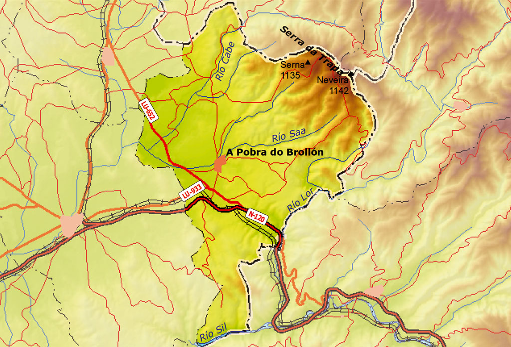 Concello da comarca de Terra de Lemos, situado na provincia de Lugo no L da Comunidade Autónoma de Galicia, a 42° 32’ 10” de latitude N e 7° 23’ 10” de lonxitude O. Limita ao N co Incio e Samos (ambos os dous na comarca de Sarria), ao L con Folgoso do Courel e Quiroga (ambos os dous na comarca de Quiroga), ao S con Ribas de Sil (comarca de Quiroga), e ao O con Bóveda e Monforte de Lemos (ambos os dous na comarca de Terra de Lemos). Abrangue unha superficie de 176,7 km2, nos que acolle unha poboación de 2.201 h (2007), distribuída nas parroquias de Abrence, Barxa de Lor, Canedo, Castroncelos, Castrosante, Cereixa, Eixón, Ferreiros, A Ferreirúa, Fornelas, Lamaigrexa, Liñares, Óutara, Parada dos Montes, Pinel, Piño, A Pobra do Brollón, Saa, Salcedo, Santalla de Rei, Veiga e Vilachá. A súa capital está no lugar da Pobra do Brollón, na parroquia do mesmo nome, a 141 km de Santiago de Compostela e a 65 km de Lugo. Está adscrito á diocese de Lugo e ao partido xudicial de Monforte de Lemos.