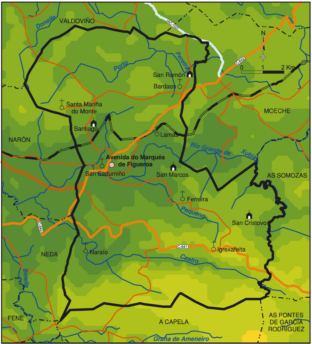 Concello da comarca de Ferrol, situado no N da provincia da Coruña e da Comunidade Autónoma de Galicia. A súa posición xeográfica é 43° 31’ de latitude N e 9° 56’ de lonxitude O. Limita ao N cos concellos de Moeche e Valdoviño (os dous da comarca de Ferrol), ao L co das Somozas (comarca de Ferrol), ao O cos de Neda e Narón (os dous da comarca de Ferrol) e ao S co concello da Capela (comarca do Eume). Abrangue unha superficie de 99,7 km 2 en que acolle unha poboación de 3.123 h (2007), distribuída entre as parroquias de Bardaos, Ferreira, Igrexafeita, Lamas, Naraío, San Sadurniño e Santa Mariña do Monte. A capital está no lugar de Avenida do Marqués de Figueroa, na parroquia de San Sadurniño, localizada a 110 km de Santiago de Compostela e a 33 km de Ferrol. Está adscrito á diocese de Mondoñedo-Ferrol e ao partido xudicial de Ferrol.