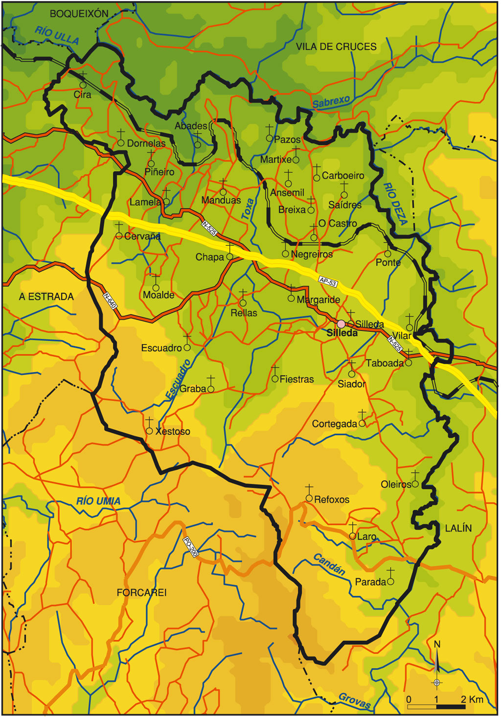 Concello da comarca de Deza situado na provincia de Pontevedra no centro da Comunidade Autónoma de Galicia, a 42° 35’ de latitude N e 8° 35’ de lonxitude O. Limita ao N con Vila de Cruces (comarca de Deza), ao L con Lalín (comarca de Deza), ao S con Forcarei (comarca de Tabeirós-Terra de Montes), e ao O coa Estrada (comarca de Tabeirós-Terra de Montes) e Boqueixón (comarca de Santiago). Abrangue unha superficie de 168 km 2 cunha poboación de 9.053 h (2001), distribuída nas parroquias de Abades, Ansemil, Breixa,Carboeiro, O Castro, Cervaña, Chapa, Cira, Cortegada, Dornelas, Escuadro, Fiestras, Graba, Lamela, Laro, Manduas, Margaride, Martixe, Moalde, Negreiros, Oleiros, Parada, Pazos, Piñeiro, Ponte, Refoxos, Rellas, Saídres, Siador, Silleda, Taboada, Vilar e Xestoso. A capital é o núcleo de Silleda, na parroquia homónima, que dista 68 km de Pontevedra e 33 km de Santiago de Compostela. Pertence ao partido xudicial de Lalín e ás dioceses de Santiago e Lugo.