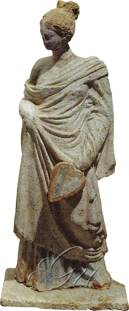 Pequena estatua de terracota policromada de época helenística que tomou o nome da cidade de Tanagra.