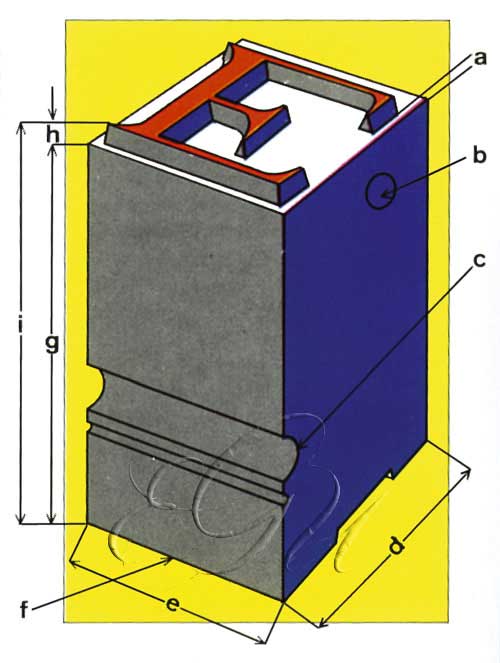 Cada unha das pezas, xeralmente de metal de imprenta, fundidas en forma de paralelepípedo de base rectangular, que levan en relevo, nunha das súas bases, unha letra ou un signo e que, postas unhas ao carón das outras adecuadamente ordenadas, forman o molde ou a forma daquilo que se quere imprimir. A forma paralelepipédica do tipo está rota por diversos resaltes e fendas, como o relevo da letra ou do signo (denominado ollo), a altura que sobresae e as entalladuras, algunhas das que, permiten a rápida identificación da familia á que corresponde a letra do tipo e a súa orientación na composición, mentres que outras facilitan a colocación do tipo no compoñedor.