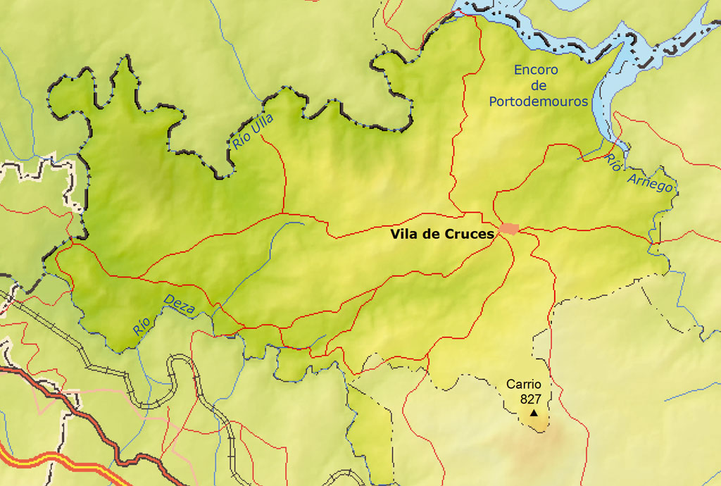 Concello da comarca de Deza situado no centro oeste da Comunidade Autónoma de Galicia, na provincia de Pontevedra (42° 47’ 30’’ N - 8° 10’ 00’’ O). Limita ao N con Touro e Arzúa (comarca de Arzúa) e Santiso (Terra de Melide), ao L co de Agolada (Deza), ao S cos de Lalín e Silleda (Deza) e ao O cos de Boqueixón (Santiago) e Touro (Arzúa). Abrangue unha superficie de 155 km 2 , cunha poboación de 6.550 h (2007), distribuída nas parroquias de Añobre, Arnego, Asorei, Bascuas, Besexos, Bodaño, Brandariz, Camanzo, Carbia, As Cruces, Cumeiro, Duxame, Ferreirós, Fontao, Gres, Larazo, Loño, Merza, Obra, Oirós, Ollares, Piloño, Portodemouros, Sabrexo, Salgueiros, San Pedro de Losón, San Tomé de Insua e Toiriz. A capital está na vila de Vila de Cruces, na parroquia das Cruces. Atópase a 45 km de Santiago de Compostela e a 84 km de Pontevedra. Está adscrito á arquidiocesede Santiago de Compostela e ao partido xudicial de Lalín.