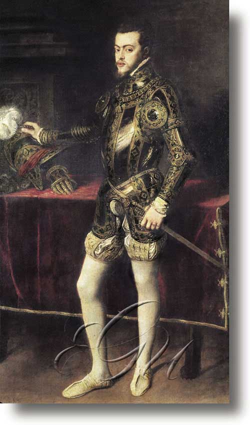 Rei das coroas de Castela e Aragón (1556-1598), de Portugal (Filipe I; 1580-1596), de Navarra, do Franco Condado, dos Países Baixos, de Sicilia, de Sardeña, do Milanesado e de Nápoles (Filipe I), fillo primoxénito de Carlos I e Isabel de Portugal. Formado nas tarefas de goberno por J. Martínez Silício e J. de Zúñiga, ocupouse desde 1543 da rexencia do país durante as longas ausencias do seu pai. Nese mesmo ano casou con María Manuela de Portugal, da que quedou viúvo ao nacer o seu fillo Carlos de Austria (1545). En 1554 o seu pai casouno coa súa tía, María I de Inglaterra, quen morreu catro anos máis tarde sen darlle descendencia. En 1555, trala abdicación do seu pai, recibiu todos os seus territorios agás os do Sacro Imperio Xermánico. Trala viaxe polos seus territorios europeos (1548-1550) e o xuramento do seu cargo ante as cortes castelás, aragonesas e navarras, trasladouse a Madrid, onde estableceu en 1562 a capitalidade e a corte. O seu reinado caracterizouse por unha marcada tendencia, no plano político administrativo, á centralización da maquinaria estatal e á burocratización e, no relixioso, á loita contra o protestantismo. No eido internacional, continuou o enfrontamento, herdado do reinado do seu pai, con Francia. En 1556 os exércitos casteláns, liderados polo duque de Alba, defenderon Nápoles e o Milanesado das tropas francesas e atacaron os Estados Pontificios aliados de Enrique II de Francia. Os enfrontamentos continuaron na propia Francia e, tralas derrotas das tropas francesas nas batallas de Saint-Quentin (1557) e Gravelines (1558), asinouse o 3 de abril de 1559 o Tratado de Cateau-Cambrésis, polo que se establecía a paz e se acordaba o seu matrimonio coa princesa Isabel de Valois (1559). Malia o tratado, o enfrontamento continuou ata a sinatura da Paz de Vervins (maio 1598), ao intervir nas Guerras de Relixión (1560-1570) para prestar apoio á familia católica dos Guisa contra os hugonotes. Nestes mesmos anos, o avance do calvinismo nos Países Baixos provocou unha serie de disturbios, que xunto coa súa intransixencia ante o protestantismo, levaron a un enfrontamento armado nestes territorios. As vitorias militares do duque de Alba (1567-1572) e os esforzos diplomáticos de Alessandre Farnese (1578-1592) non conseguiron evitar a emancipación e posterior independencia das provincias protestantes do N. A axuda inglesa aos rebeldes holandeses co desembarco dos exércitos ingleses en Flandres, os intereses coloniais da coroa inglesa, os continuos ataques dos corsarios ingleses ás costas americanas e peninsulares, e a execución de María Stuart precipitaron o enfrontamento coa Raíña Isabel I de Inglaterra. En 1588 enviou a Grande Armada coa intención de invadir Inglaterra. Non obstante , a superioridade militar inglesa, xunto coas malas condicións climáticas, levaron á perda da flota e á desfeita da Armada Invencible. Os ataques turcos no Mediterráneo levárono a formar, xunto cos Estados Pontificios e Venecia, a Liga Santa, que infrinxiu unha derrota aos turcos na Batalla de Lepanto (1571). Á morte do Rei Sebastián de Portugal (1580) optou ao trono portugués e foi recoñecido como tal nas Cortes de Tomar (1581). Portugal conservou unha autonomía absoluta e Lisboa chegou a disputar a capitalidade da coroa con Madrid. No eido político, dentro da Península Ibérica tivo que enfrontarse á rebelión dos mouriscos nas Alpujarras (1568-1570) e ao conflito co seu secretario Antonio Pérez, que tras unha breve estancia no cárcere fuxiu ao Reino de Aragón, de onde era orixinario e onde non podía actuar a xurisdución real. O secretario foi acusado entón de herexía pola Inquisición e as tropas castelás entraron en Zaragoza, onde se produciu unha rebelión, ao considerar a presenza das tropas un ataque ás súas constitucións e foros. Enviou, entón, un exército co fin de sofocar os disturbios e nas cortes de Tarazona (1592) cambiou algúns aspectos das leis aragonesas: o monarca nomearía os vicerreis e escollería persoalmente o Xustiza Maior. A Inquisición trouxo un novo campo de acción no ataque dos sospeitosos de doutrinas protestantes e Filipe II prohibiu aos naturais dos seus reinos poder estudar no estranxeiro e mantivo en materia relixiosa unha actitude que ultrapasou a oficial da Igrexa. No eido económico, Castela, sometida á continua presión fiscal que conlevaban as loitas exteriores, continuou o proceso de empobrecemento e a monarquía chegou a declararse en bancarrota en 1575, malia os recursos que lle proporcionaban as colonias americanas, ás que se engadiron os territorios das Filipinas. O comercio con América foi en todo momento insuficiente para cubrir as necesidades das colonias e, a situación de guerra con Inglaterra, foi unha porta aberta ao contrabando inglés naquela zona. Durante o seu reinado establecéronse os límites territoriais do Reino de Galicia e foron creadas sete provincias dependentes dunha Xunta Real do Reino de Galicia. Produciuse, ademais, o traslado da Real Audiencia do Reino de Galicia desde Santiago de Compostela á cidade da Coruña e o establecemento na mitra compostelá do Tibunal da Inquisición (1574), co fin de impedir a entrada en Galicia da herexía protestante. No eido económico caracterizouse polo empobrecemento agrícola e pola grave situación comercial provocada pola cancelación do privilexio, concedido por Carlos I, de comercio dos portos galegos do Mar Cantábrico cos territorios de Ultramar. A súa figura deu lugar na historiografía a interpretacións diverxentes, mentres que a historiografía española presentouno como un bo gobernante, a historiografía anglosaxona desenvolveu ao redor da súa persoa unha lenda negra.