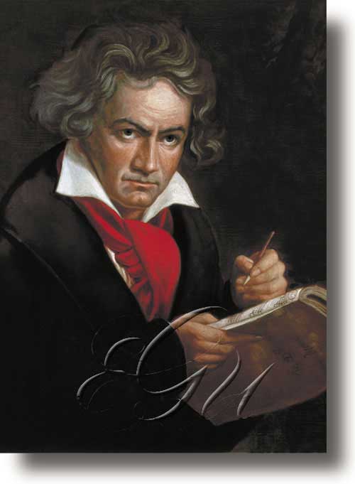 Compositor alemán de orixe flamenga. Comezou a súa educación musical de neno da man do seu pai, para logo ser alumno de Tobias Pfeiffer e de Christian Gottlob Neefe. En marzo de 1778 foi presentado como neno prodixio da música nun concerto organizado polo seu pai e aos dezaseis anos marchou a Viena, coa intención de ser discípulo de Mozart, o que non acadou debido á negativa do mestre. Posteriormente recibiu leccións de Haydn, B. Schenk, Johann G. Albrechtsberger, Antonio Salieri e Aloys Förster. Froito destes estudios foron, entre outros, os Concertos para piano, op 15 e 19 e Tríos op 1, estreados en 1795. Pronto sobresaíu polos seus dotes de compositor e pianista. Lenz foi o primeiro musicólogo que distinguiu tres estilos ou etapas dentro da obra de Beethoven. Na primeira (ata 1800), as súas obras non se distinguiron formalmente das de Haydn e de Mozart, pero teñen trazos orixinais característicos; as obras máis destacables foron a Sonata para piano op 13 (1798), coñecida como Patética, os dous primeiros concertos para piano e orquestra, a Primeira Sinfonía (1800), a colección de Seis cuartetos opus 18 (1799-1800), e o célebre Septeto opus 20 (1800). A finais desta época manifestóuselle a xordeira, que acabou sendo total. Na segunda etapa (1801-1814) reformou a estrutura clásica da sinfonía, substituíndo o minueto por un scherzo que permitía unha liberdade máis grande na composición. En 1801 comezou a compoñer a Segunda Sinfonía onde, como innovación, substituíu o minueto do terceiro movemento por un scherzo. A continuación compuxo a Terceira Sinfonía (1803), coñecida como Heroica; a Cuarta Sinfonía (1806); a Quinta Sinfonía (1807-1808); a Sexta Sinfonía ou Pastoral (1808); a Sétima Sinfonía e Oitava apareceron simultaneamente no 1812. Mentres tanto, publicara o seu Concerto para violín, op 61 (1806) e os tres últimos concertos para piano e orquestra, e tamén os tres cuartetos Rassumovski, op 59 (1806) e a súa única ópera Fidelio (1805). Desta época son tamén algunhas das súas sonatas máis famosas: Appassionata, op 57, para piano, e Sonata a Kreutzer, op 47, para violín e piano. Malia respectar a forma clásica da sonata, ampliouna e desenvolveu os temas cunha extensión desacostumada ata entón. Na última fase da súa vida (do 1815 en diante), creou as derradeiras sonatas para piano, como a Hammerklavier, op 106, os daquela incomprendidos cuartetos, a Gran Fuga para corda, op 133, a Missa Solemnis en re maior (1823) e a Novena Sinfonía (1824), onde introduciu, no último movemento, por vez primeira a voz humana (con texto de Schiller). A súa influencia sobre xeracións vindeiras foi indeleble porque promoveu a transformación da música occidental, da cal é, quizais, o compositor máis representativo.