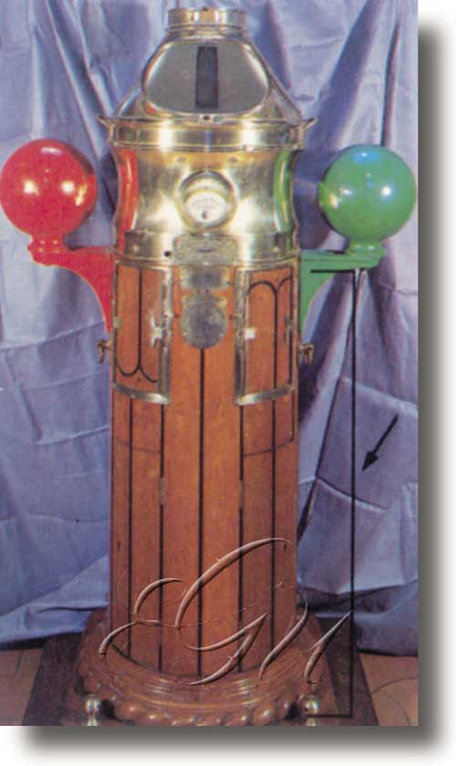 Agulla náutica con imáns e esferas compensadoras da desviación magnética.