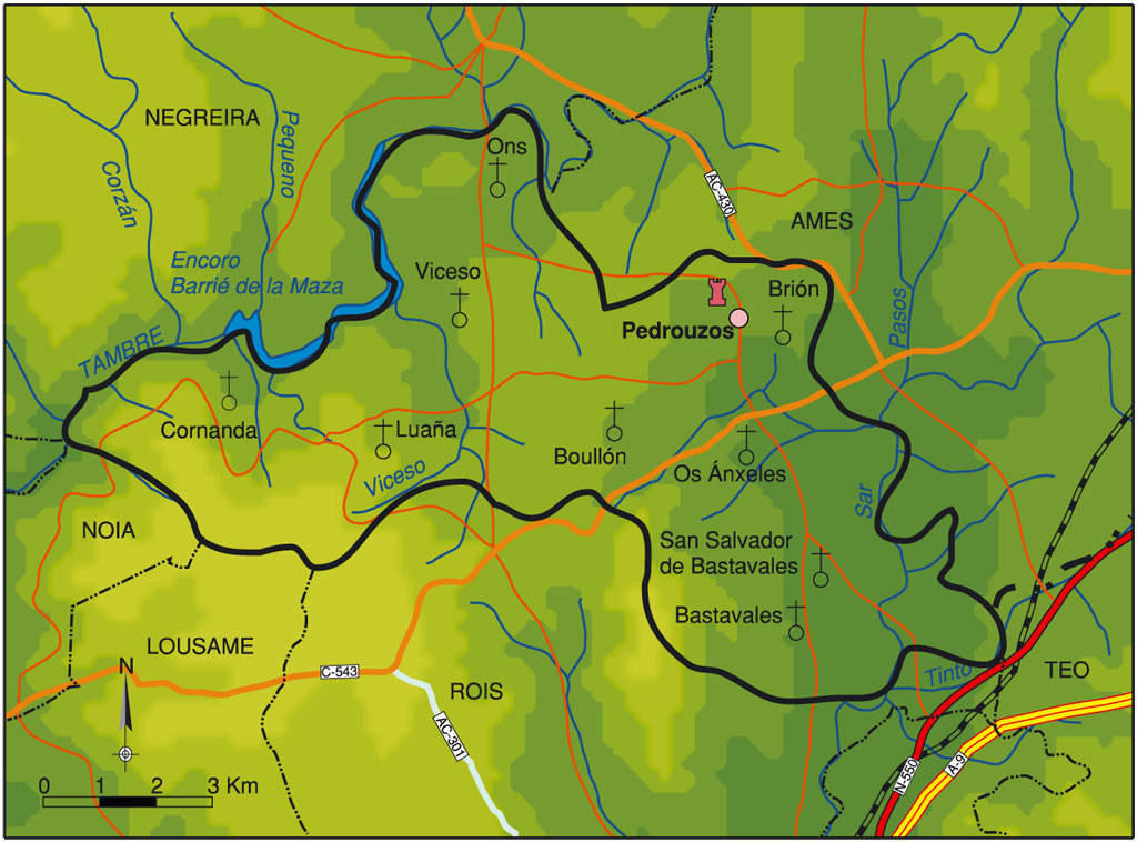 Concello da comarca de Santiago, situado na provincia da Coruña no O da Comunidade Autónoma de Galicia. Limita ao N cos concellos de Negreira (comarca da Barcala) e Ames; ao S cos de Noia e Lousame (comarca de Noia) e Rois (O Sar); ao L co de Ames e Teo (os dous de Santiago) e ao O con Outes (Noia). Abrangue unha superficie de 74,9 km 2 cunha poboación de 7.087 h (2007), distribuídos nas parroquias dos Ánxeles, Bastavales, Boullón, Brión, Cornanda, Luaña, Ons, San Salvador de Bastavales e Viceso. A capital municipal é o lugar de Pedrouzos, situado na parroquia de Brión, a 42° 51’ 5’’ de latitude N e 8° 40’ 7’’ de lonxitude O, dista 13 km de Santiago de Compostela. Está adscrito ao partido xudicial de Negreira e á arquidiocese de Santiago.