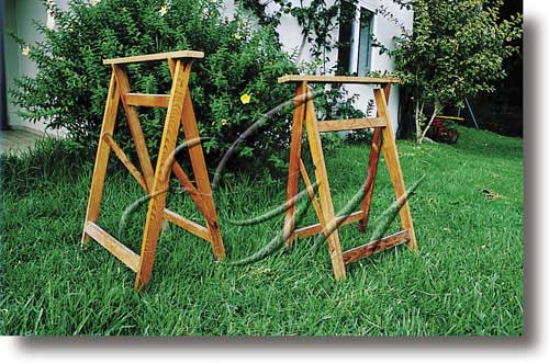 Utensilio que consiste xeralmente nun pao apoiado de forma horizontal en catro patas diverxentes, que serve de soporte para diversos usos, entre eles, formar provisionalmente unha mesa, un banco, etc.