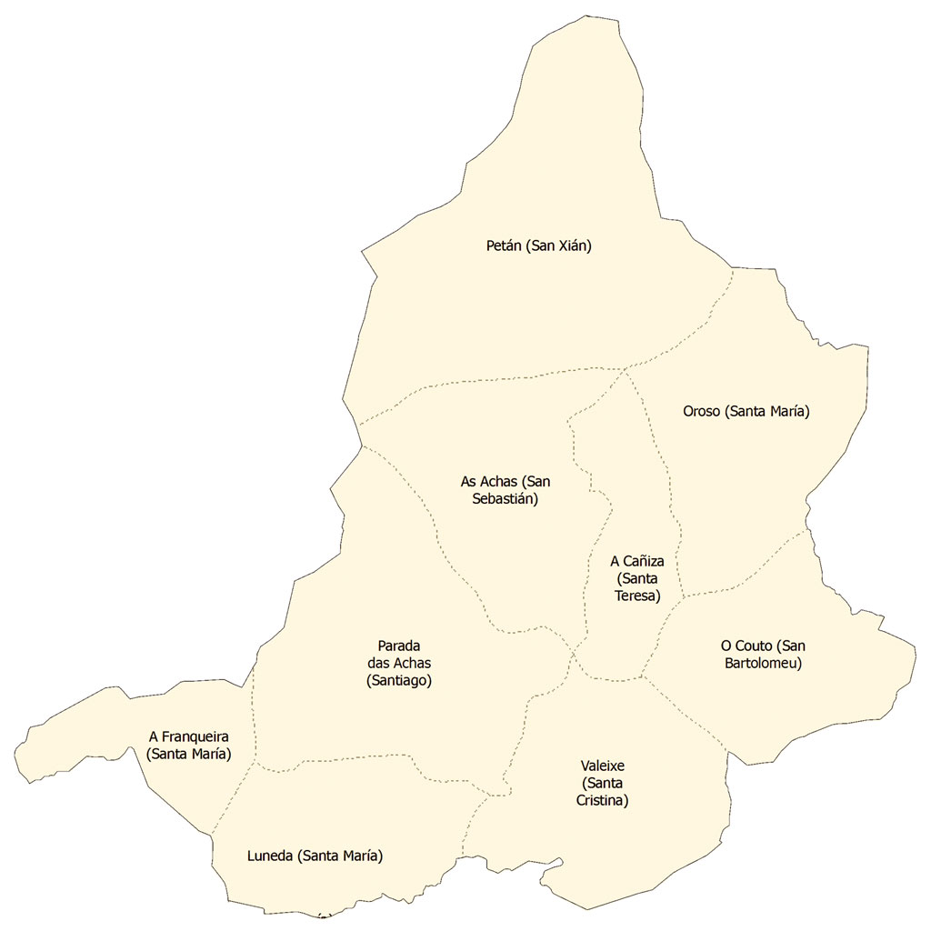 Municipio da comarca da Paradanta, situado na provincia de Pontevedra no SO da Comunidade Autónoma de Galicia. Limita ao N co concello de Melón (O Ribeiro), ao L cos de Crecente (A Paradanta) e Melón, ao S co de Arbo, Crecente (A Paradanta) e As Neves (O Condado), e ao O co de Covelo (A Paradanta), e Mondariz e Salvaterra de Miño (O Condado). Abrangue unha superficie de 107,5 km 2 , nos que se acolle unha poboación de 6.696 h (2007), distribuídos nas parroquias das Achas, A Cañiza, O Couto, A Franqueira, Luneda, Oroso, Parada das Achas, Petán e Valeixe. A capital é a vila da Cañiza, na parroquia da Cañiza, situada a 42° 12’ 30’’ de latitude N e 8° 16’ de lonxitude O, a 136 km de Santiago de Compostela e a 50 Km de Vigo. Está adscrito ao partido xudicial de Ponteareas e á diocese de Tui-Vigo.
